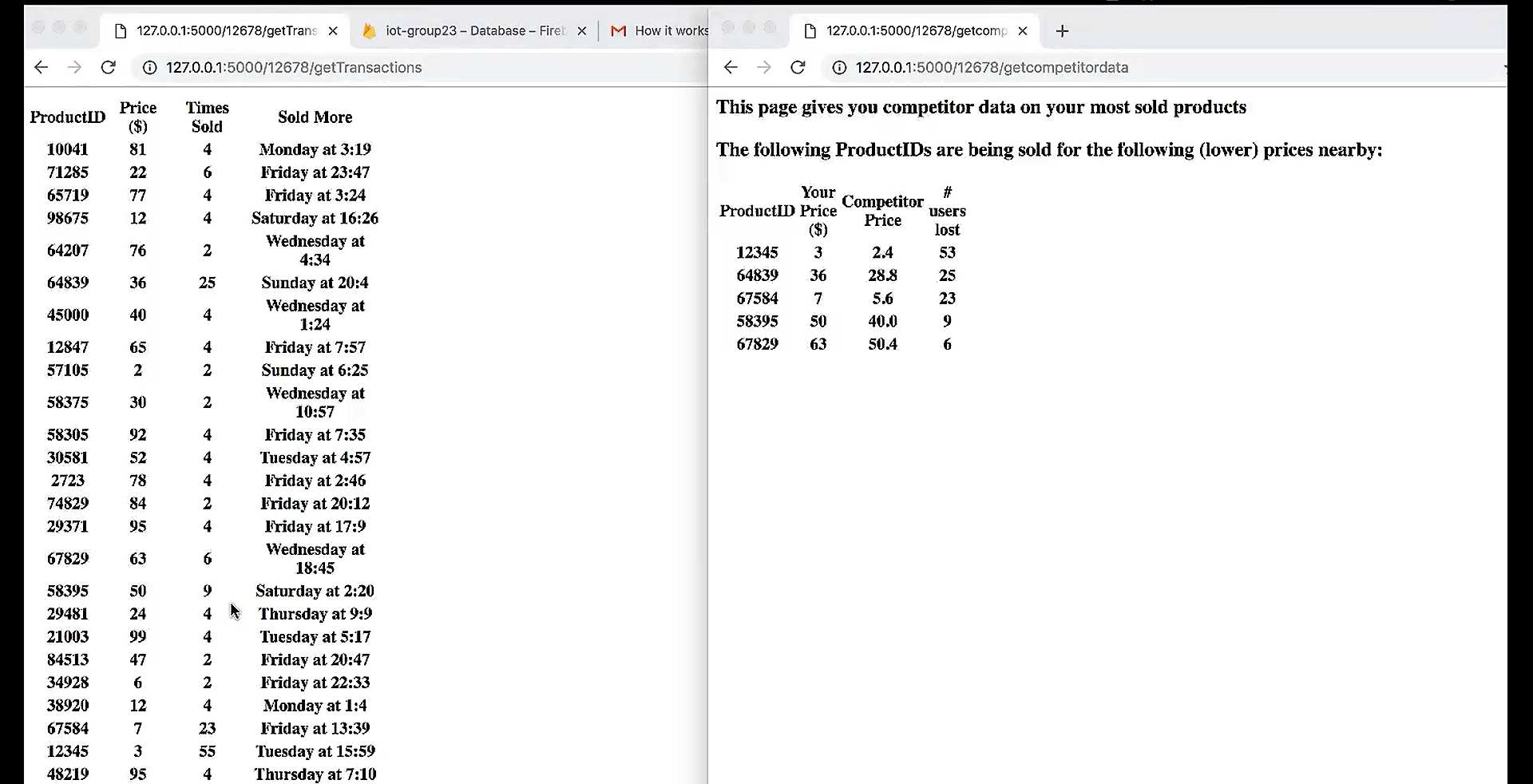 A web-based data analytics tool is also set up for the vendor where he can monitor the time and frequency of purchase of different product types and also whether his competitors are selling the same product at a better price and as a result affecting his sales. This data allows him to make Quality of Service (QoS) and pricing decisions to stay afloat in the market.